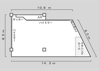 2面が大きな鏡張りで、ヨガやピラティス・バレエなどの練習・教室、など多目的にご利用いただけます。